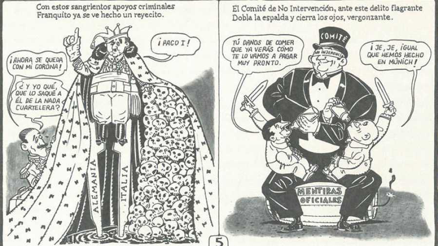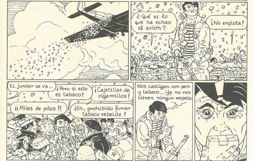 Volviendo sobre la historia de Picasso en la Guerra Civil, la novela, además de ser un claro homenaje a la obra y vida de Picasso (y como él, otros tantos artistas que se involucraron con la democracia republicana y contra el fascismo), también lo es al género del cómic, la historieta, y a ese punto de encuentro entre el genio malagueño y el tebeo, que sería el trabajo de propaganda y de esos artistas gráficos, cuyos fusiles eran los lápices. Y con esto, ¡¡AVISO SPOILER!!, cierra el ejercicio de metacómic Daniel Torres al presentarnos una historia donde constantemente el personaje de Picasso (o Pablo Ruiz) está deseando dejar los lápices y pinceles, para cambiarlos por un fusil con el que combatir al fascismo, pero en realidad en ninguno de los niveles de abstracción y reinvención del personaje llega a hacerlo; comprendiendo el protagonista que con su trabajo artístico está empuñando un arma tan valiosa como cañones contra el enemigo.