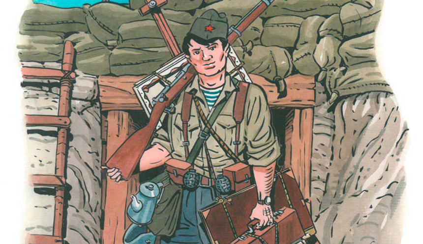 Y ya que hablamos del estilo pictórico de la obra, es necesario que hagamos una breve parada en su portada, en la cual tenemos una fusión entre el famoso cartel de ‘¡Armas al hombro!’, de Chaplin y un retrato de Pablo Picasso pintado por Ramón Casas a principios del siglo XX, que Daniel Torres acabará de rematar con la estética propia del miliciano republicano.