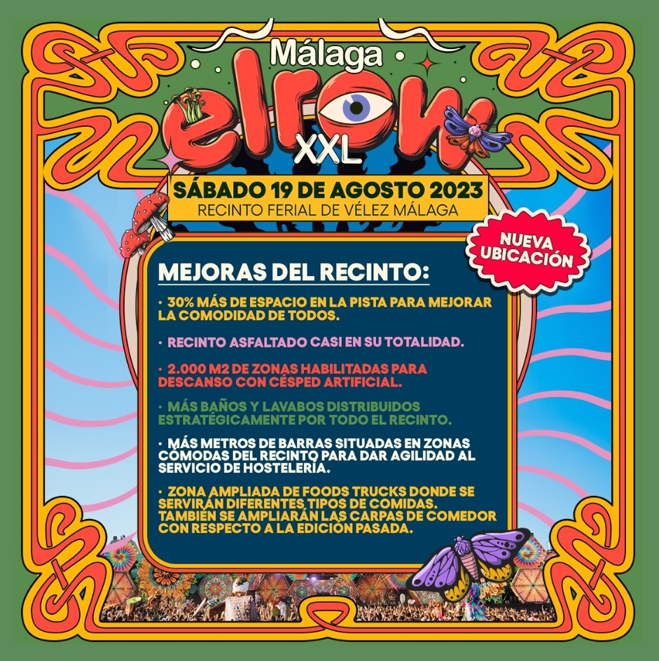 Más de 35.000 personas disfrutaron de la edición anterior convirtiendo el festival celebrado en Torre del Mar, la capital multitudinaria del Techno y la fiesta. Sus tres escenarios, uno de ellos XXL, y ambientación hicieron ver a los asistentes que no estaban en un festival cualquiera, sino que estaban en Elrow.