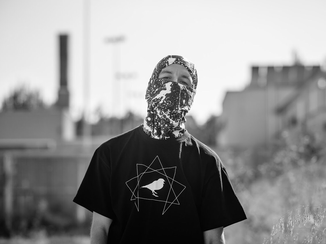 La portada es obra de SAN (Daniel Muñoz) un artista cuyo origen esta en el mundo del graffiti y con el que ya flipábamos desde hace bastantes años. Yo admiro muchísimo su trabajo y teníamos contacto desde hace unos años y en mi cabeza cuajó la posibilidad de proponerle esta portada ya que me imaginaba conceptualmente el artwork con su estilo. Le flipó la idea y en base a una idea original pero básica que yo tenia él empezó a construir todo ese imaginario alrededor del pasamontañas. Son todo códigos encriptados en las letras que mezclan y unes dibujos con frases o cifras y no desvelo demasiado ya que en breve editaremos el EP en vinilo y aquellos que lo pillen podrán disfrutar del flipante artwork que se ha currado, en el tamaño en que merece ser observado.