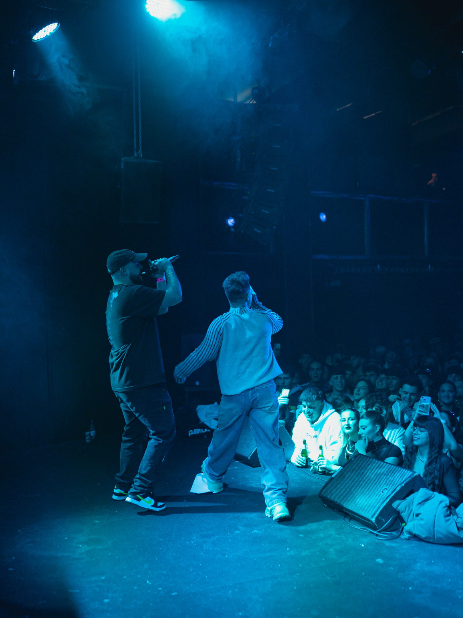 Durante las dos horas de show, el estilo ecléctico -mezcla de trap y electrónica-  se hacía con temas como Black Hole, Harry y su varita, No es lo mío o Cora Partido. Los pogos que se forman durante el tema Bubalu encajaban a la perfección con la voces de producciones posteriores protagonizadas por Diácono o Yeez Codein. La entrega de los protagonistas con los asistes fue de tal magnitud, que consiguieron enmarcar todo el show dentro de una misma sintonía, un equilibrio que restaba división en la barrera entre artistas y seguidores.