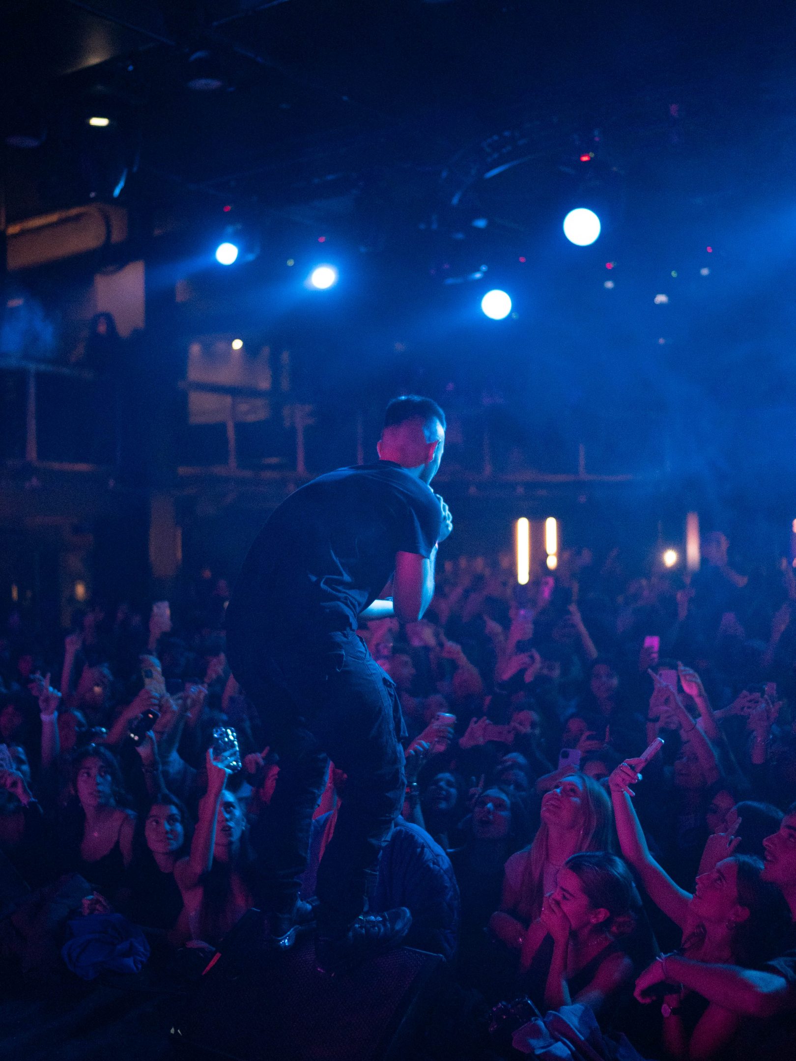 Durante los últimos minutos las paredes de clásica sala madrileña retumbaron con los saltos del público al escuchar Mandaloriano, (producción del grupo emergente Jackson 4 en colaboración con John Pollón) sin dejar de lado la aparición estelar de la ya famosa Gallina y cocaína, tema viral del artista, y Rascacielos que cuenta con más de 3 millones de reproducciones en Spotify.