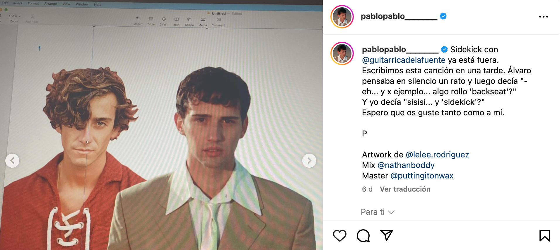 Pablopablo continúa afianzando su talento en la escena musical española, esta vez, el artista sorprende en su nuevo tema “Sidekick”, una suave mezcla de sonidos y el abrazo de dos voces que se produce gracias a la colaboración con Álvaro LaFuente, Guitarricadelafuente, como es más conocido en la escena.