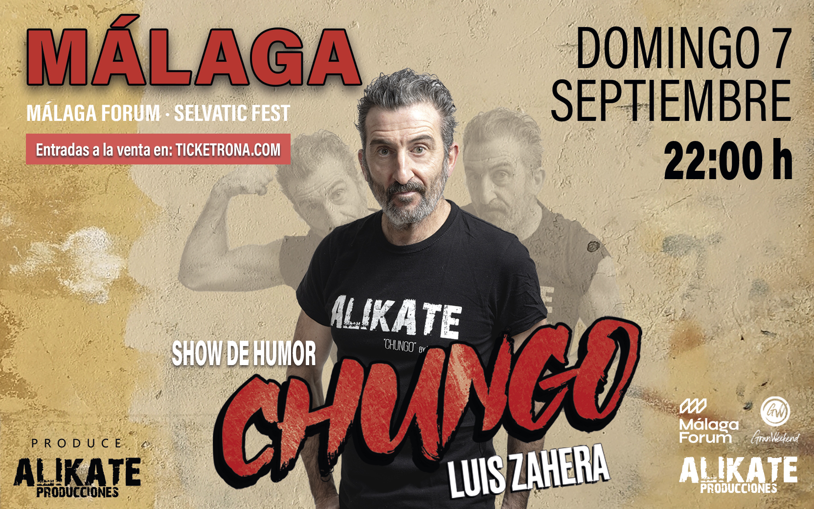 El esperado monólogo “Chungo”, protagonizado por el premiado actor Luis Zahera, llegará a Málaga el próximo domingo 7 de septiembre de 2025, a las 22:00 h, dentro del programa del Selvatic Fest en el Málaga Forum (autocine Málaga, Churriana).
