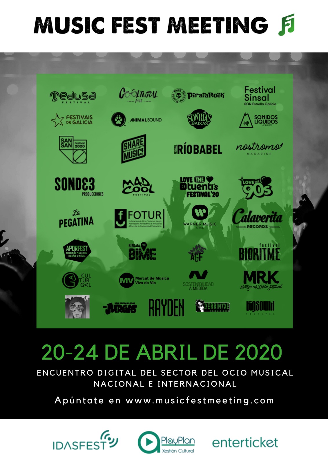 Del próximo 20 al 24 de abril tendrá lugar la primera edición del Music Fest Meeting, un encuentro digital que contará con la visión de algunos de los principales actores del sector de los festivales. Esta iniciativa, que es promovida por IDASFEST, PlayPlan y Enterticket y que será retransmitida en directo por Youtube, pretende poner en valor a la industria de la música en vivo, ser altavoz, aunar fuerzas y crear sinergias en tiempos difíciles. Además, contará con la participación de agentes del panorama internacional.
