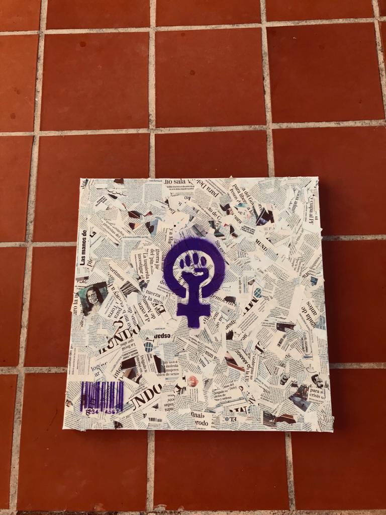Me gusta plasmar mis visiones a cerca de movimientos sociales, hasta el momento ha sido sobre feminismo, tengo dos dedicados a este movimiento. En uno empleé recortes de noticias de periódicos a cerca de mujeres afectadas por la violencia de género con el símbolo feminista en el centro, el otro es lo contrario, el símbolo rellenado con esos recortes.